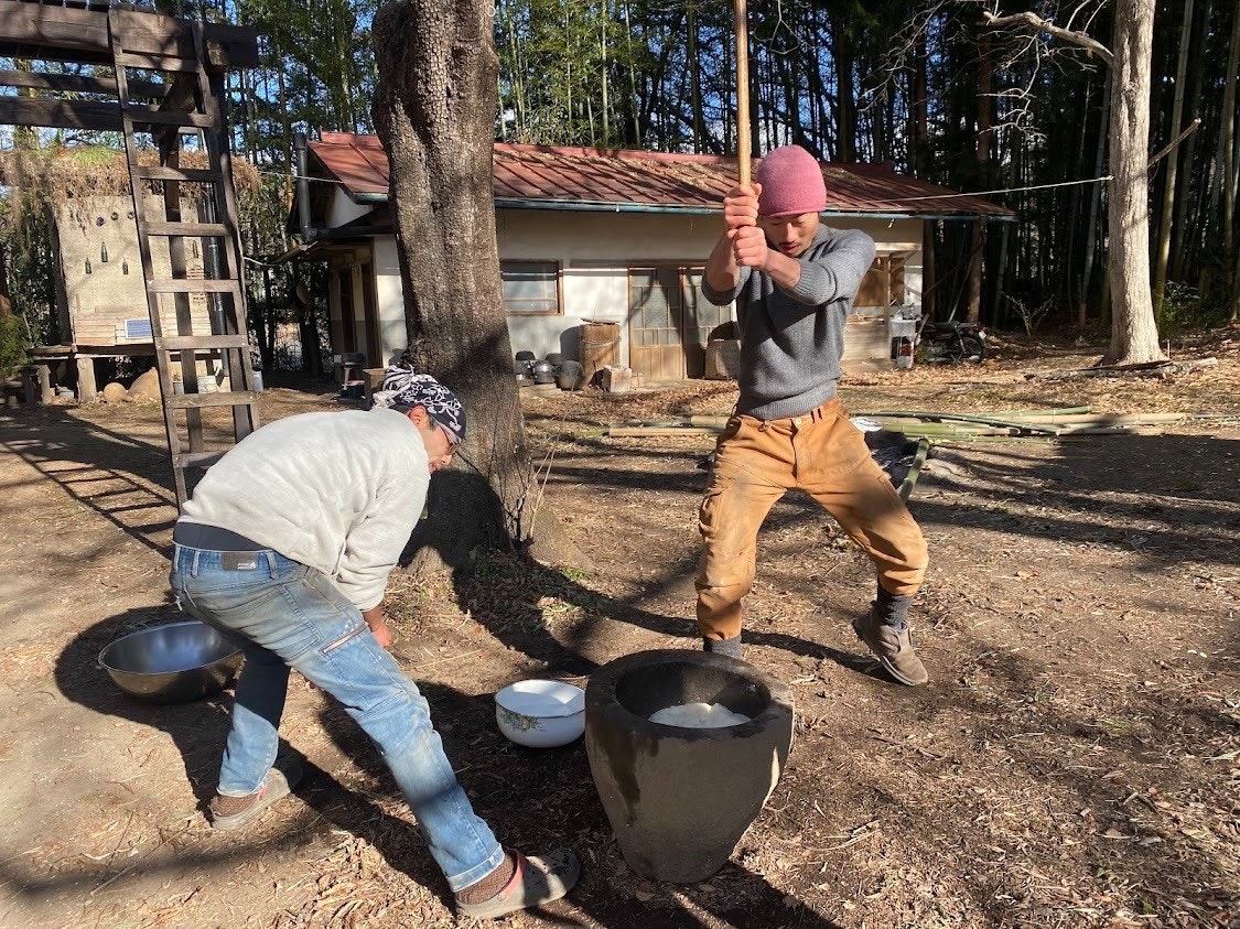 (合いの手がぼく。つき手の写真がなかった...体力仕事なので交代ごうたいで。)