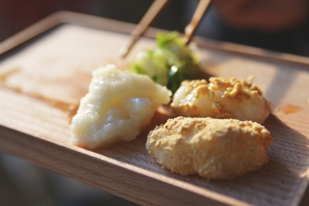 お湯をさっとくぐらせて、ちょっとぜいたくに挽きたてきなこもち。