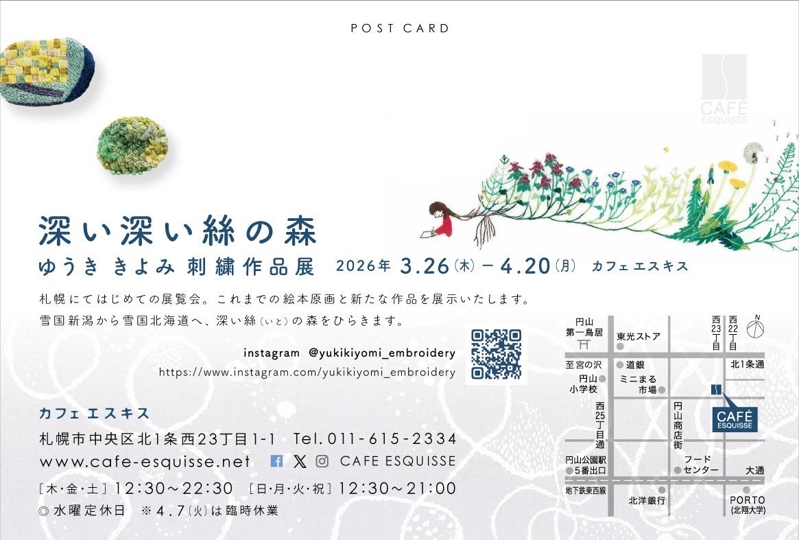 2026年3月26日(木)〜4月20日(月)まで、北海道札幌市にある「CAFE ESQUISSE」にて作品展の開催を予定している。