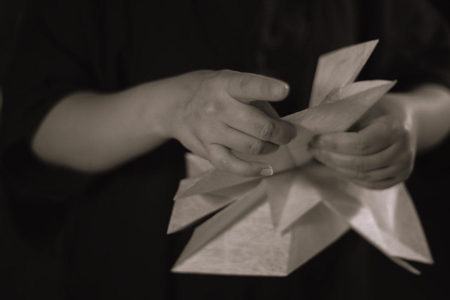 2013年、降る雪からのインスピレーションで、独学で照明シェードやアート作品、アクセサリーなどを制作し始める。全国の和紙産地を巡り、和紙の魅力を伝えるworkshopを開催。2025年から岡山県美作市山間部の集落との2拠点生活を開始。冬は岡山で紙づくりと和紙のプロダクト開発を行う。また、和紙工芸のアーティストとして大学での講義、小中学校での特別授業をする。折りとデザインのworkshop開催や和紙の特長を活かした暮らしの道具づくり、舞台装飾や伝統工芸教育(和紙)の現場で、和紙が身近にある未来を発信している。